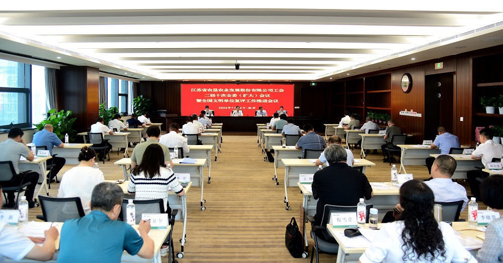•        7月10日,蘇墾農發工會在南京召開二屆十次全委(擴大)會議暨全國文明單位復評工作推進會議,會議總結交流2023年工作、表彰先進,全面部署2024年工會工作重點任務,并就全國文明單位復評迎檢工作作出進一步安排。公司黨委副書記、工會主席王進強出席會議并講話。
